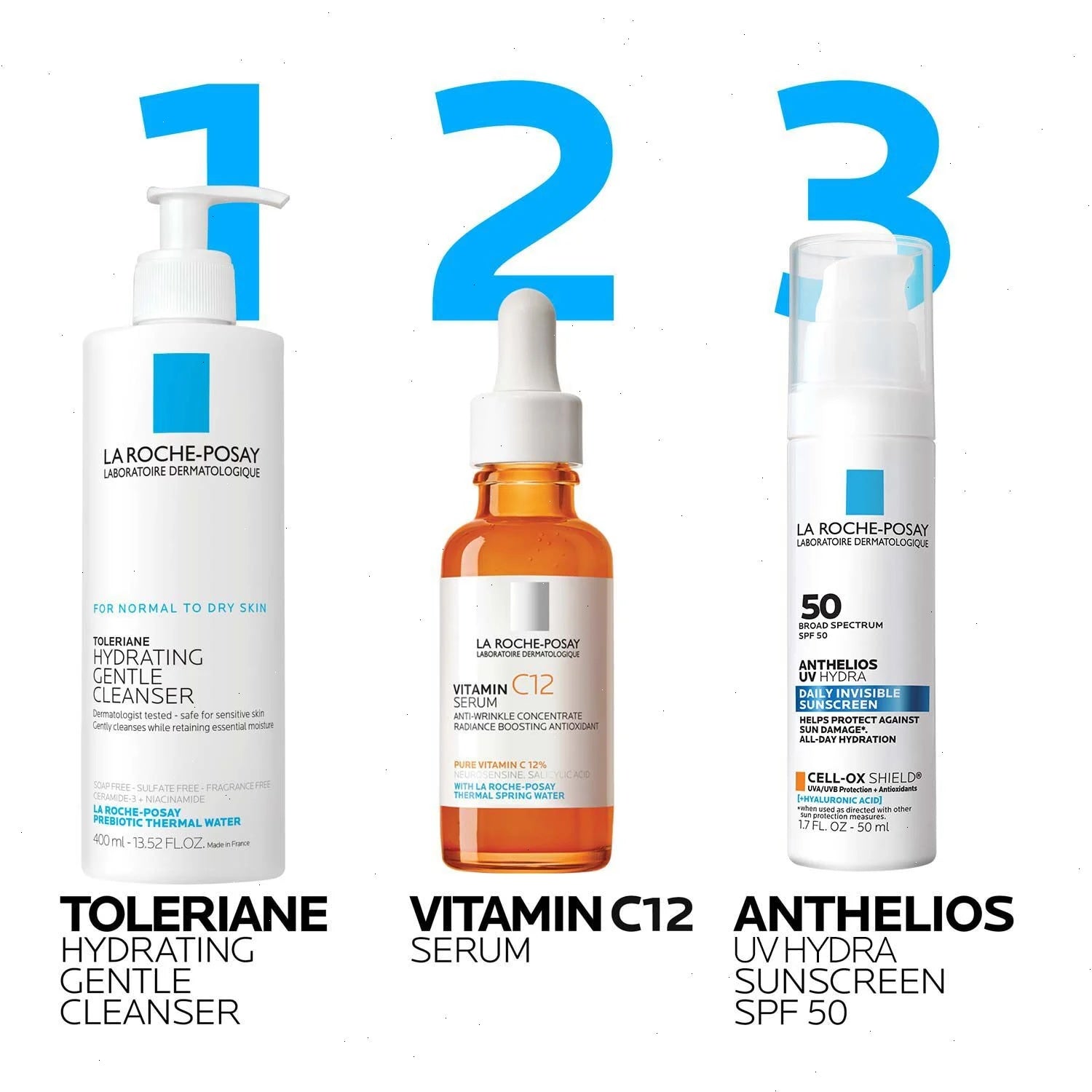 La Roche-Posay Thermal Spring Water: A soothing water sourced in the town of La Roche-Posay in France and a core ingredient in most of our products. It contains a unique combination of minerals, trace elements, and a high concentration of selenium, a natural antioxidant.