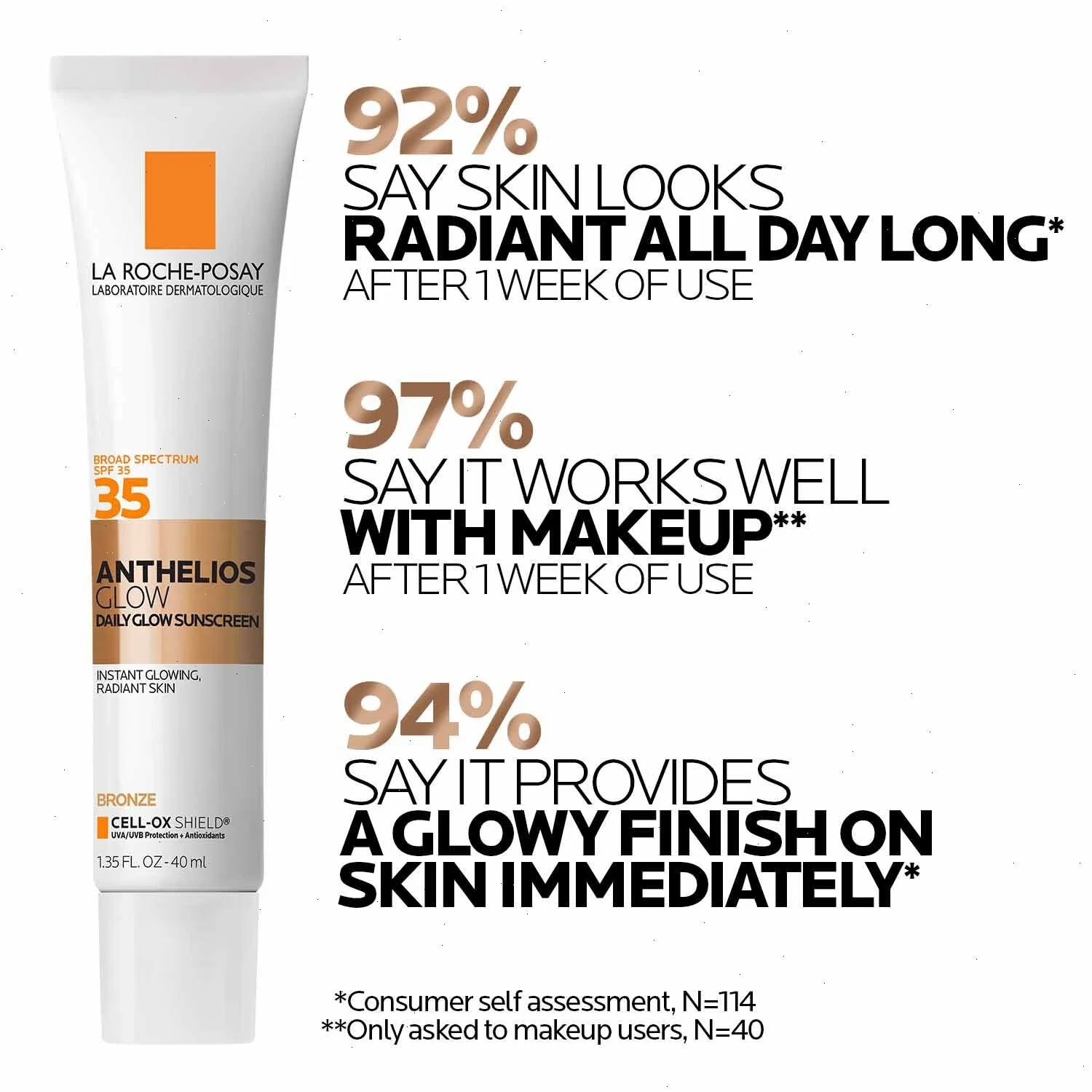 Anthelios Glow Sunscreen SPF 35 is designed to instantly illuminate the skin and create a sun-kissed glow. This lightweight sunscreen has a subtle, blendable tint and leaves a radiant finish while improving the skin's natural radiance. Its breathable texture makes it ideal for daily use that can be used alone or with makeup. It blocks 98% UVB rays with Cell-Ox Shield® Technology* while helping to decrease the risk of skin cancer and early skin aging caused by the sun*.